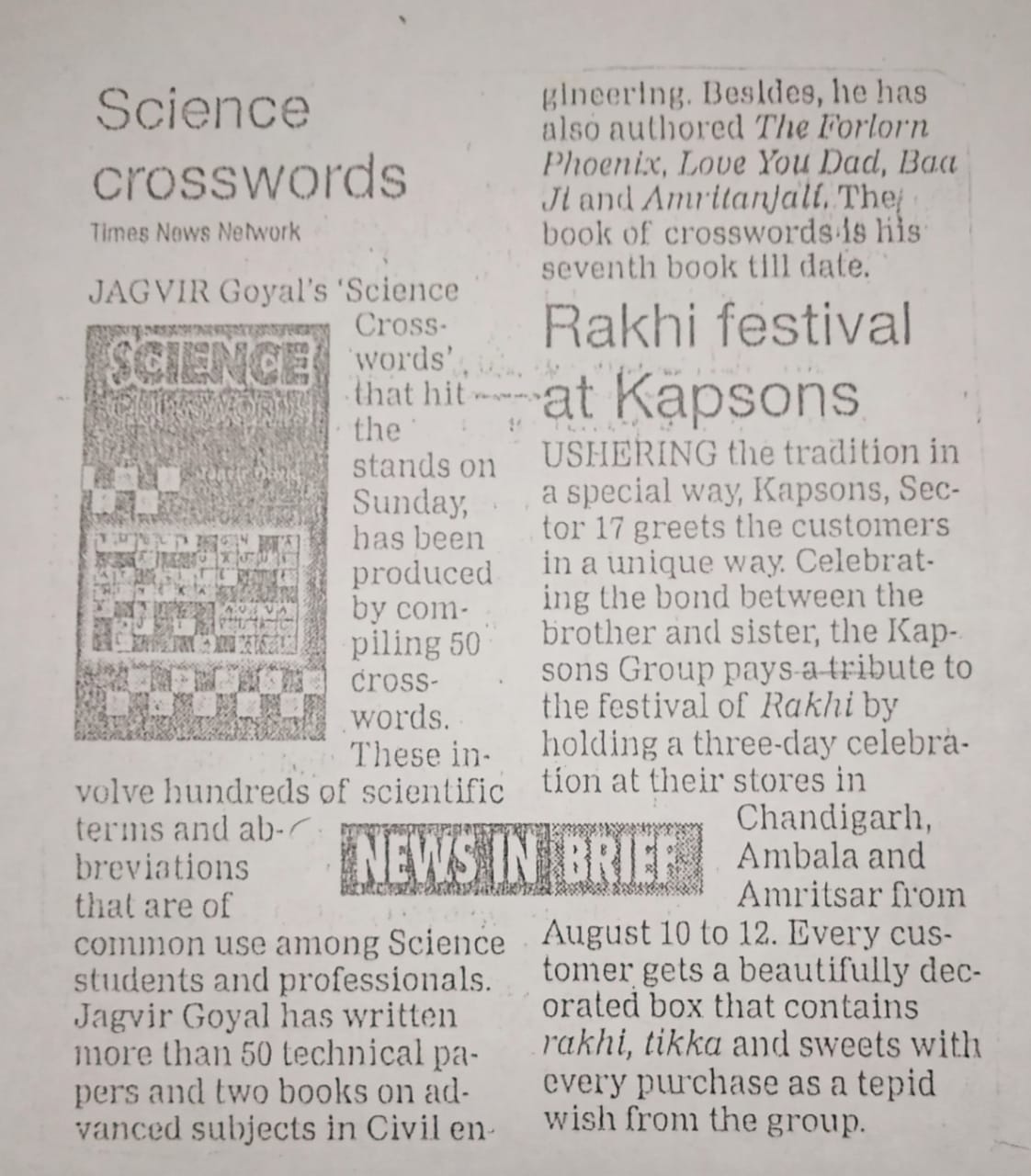 Jagvir Goyal's Science Crosswords that hit the stands on Sunday has been produced by compiling 50 crosswords. These involve hundreds of scientific terms and abbreviations that are of common use among Science students and professionals. Jagvir Goyal has written more than 50 technical papers and two book on advanced subjects in Civil engineering.